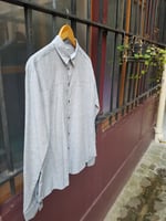 C'est une chemise aux manches longues qui conjugue minimalisme et modernité. Sa coupe droite joue l'épure à son paroxysme. Plus de poches plaquées au niveau de la poitrine mais une découpe transversale toujours présente pour apporter une structure simple et efficace. Le coton chiné (petits points) donne un aspect de fausse régularité dans la trame du tissu et traduit un esprit urbain timeless.